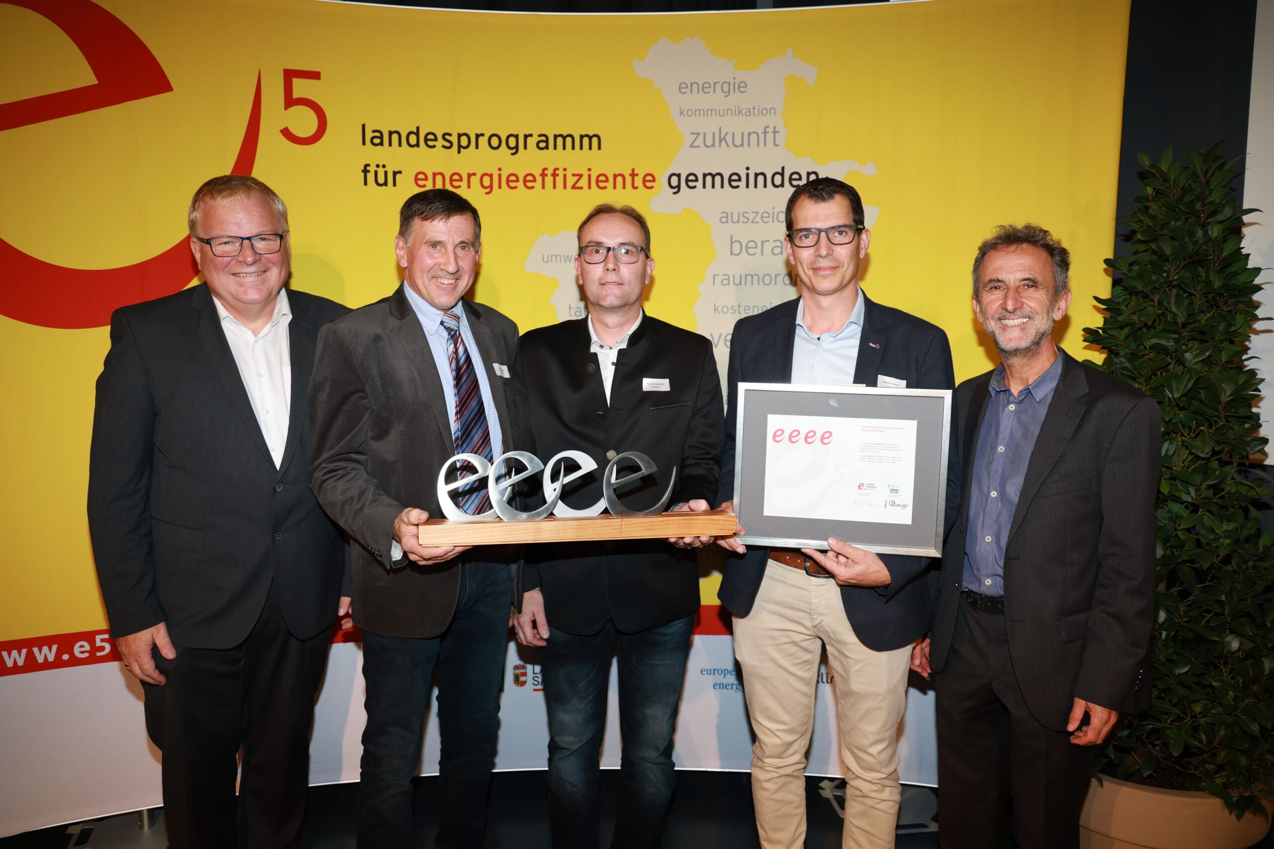 Beim feierlichen Abendprogramm wurde deutlich: Salzburgs Gemeinden leisten Beeindruckendes. Eröffnet wurde der Abend von Franz Angerer, Geschäftsführer der Österreichischen Energieagentur, mit seiner Keynote „Energiewende findet (trotzdem) statt!“. Im Anschluss wurden acht Gemeinden im Rahmen des e5-Landesprogramms für ihre konsequente Energiearbeit ausgezeichnet – darunter St. Johann im Pongau und Thalgau mit der Höchstbewertung von fünf „e“. Vier „e“ erhielten die Gemeinden Berndorf, Bruck an der Großglocknerstraße, Thomatal und die Marktgemeinde Taxenbach. Drei „e“ wurden an die Stadt Salzburg verliehen und mit zwei „e“ wurde die Gemeinde Bürmoos ausgezeichnet. Im e5-Programm setzten die Gemeinden unter anderem folgende Maßnahmen um: